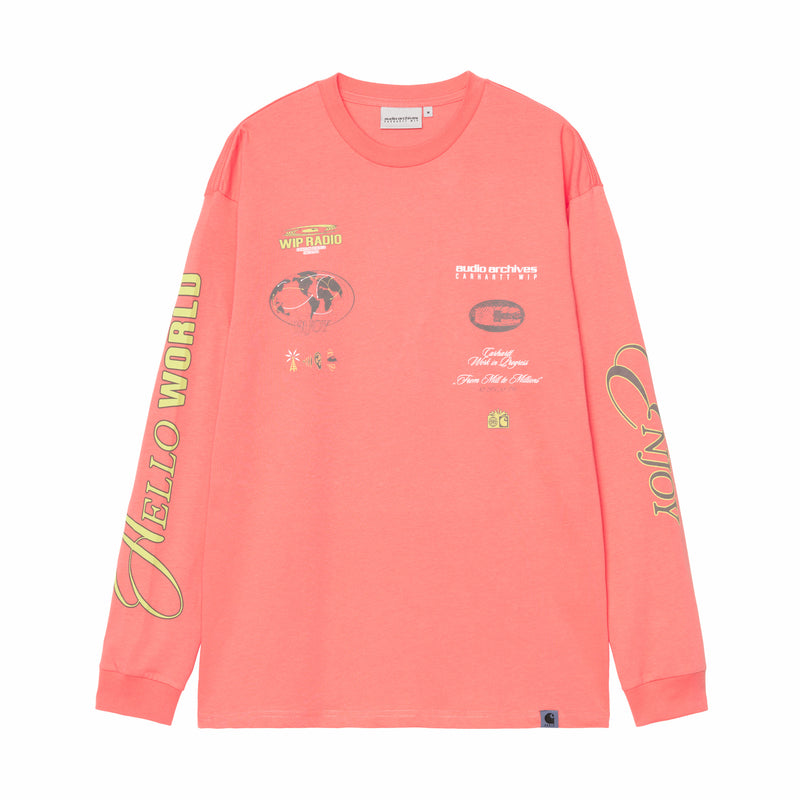 Audio Archives marks over 15 years of Carhartt WIP Radio, celebrating independent artists and labels, while honoring the deepening cultural impact of community radio today. The Audio Archives WIP L/S T-Shirt is made from a midweight organic cotton jersey in a loose fit. Graphic prints appear on the front, back and sleeves. A Carhartt WIP Radio Square Label appears on the bottom hem.
