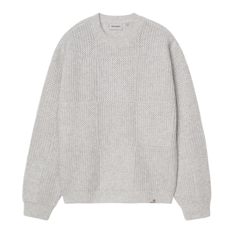 The Bishop Sweater is a heavyweight knit made from wool-rich yarn in a tonal checkerboard pattern. A woven Square Label appears at the hem.