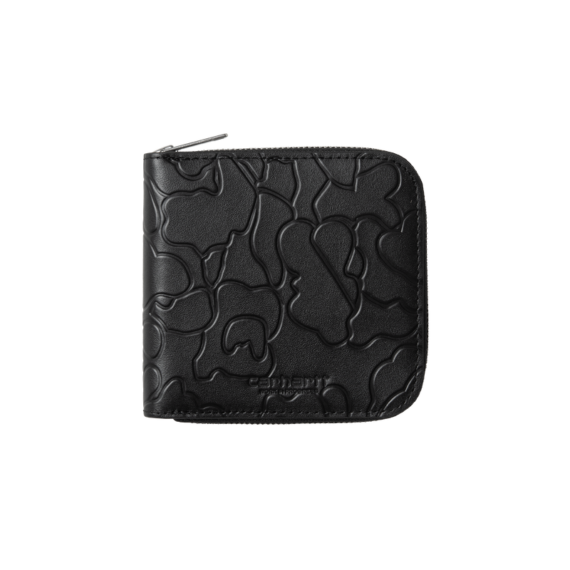 Measuring 9.5 x 11 cm (3.7 x 4.3 inches), this wallet features a lined interior, zippered pockets, and an embossed script detail. Crafted from 100% cow leather, it is finished with a sleek silver zipper for a refined look.