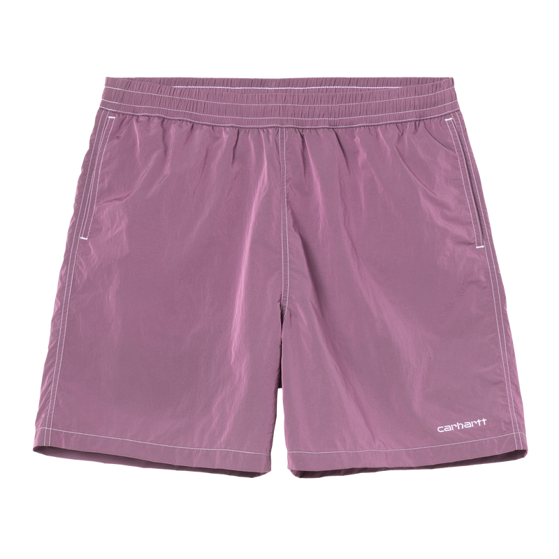 Crafted from durable, water-repellent nylon taffeta, the Canby Swim Trunks deliver both performance and style. Refined details include contrast stitching throughout, functional side pockets for essentials, and a dedicated key holder integrated into the back pocket. The design features an embroidered script logo on the front and a woven square label on the back. Engineered with an inner trunk for comfort and constructed entirely from 100% nylon for reliable water resistance.