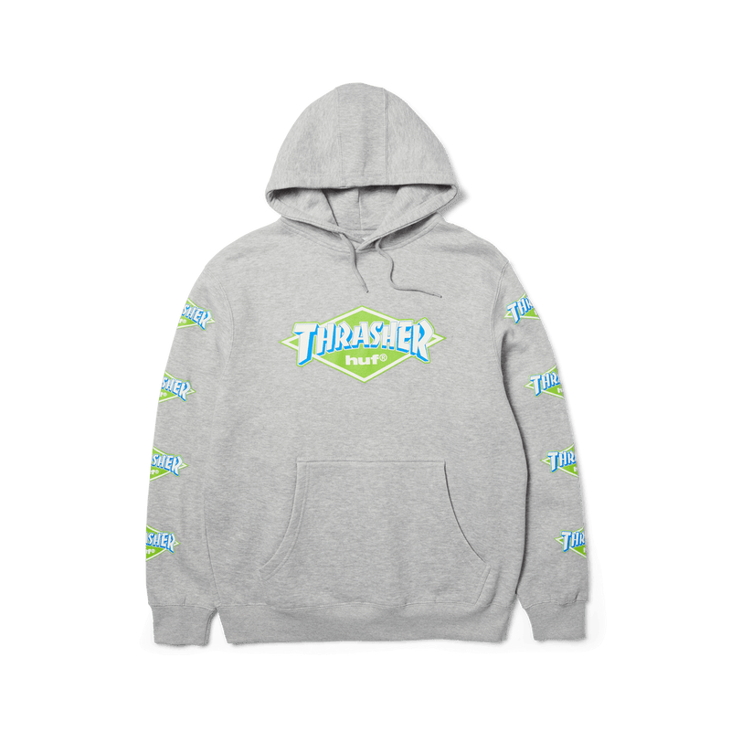 HUF X THRASHER LOGO PO HOODIE HEATHER GREY