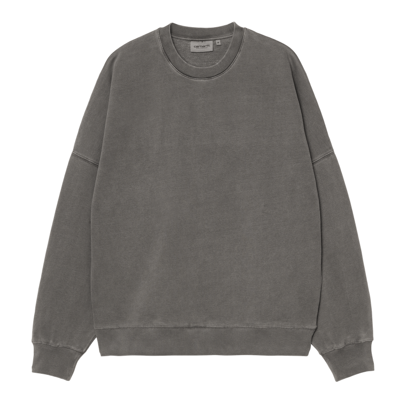 This garment features a balloon fit with an unbrushed texture, crafted from 100% cotton sweat fabric weighing 440 g/m². It is enhanced with graphic details applied directly onto the outer shell, combining comfort with refined design.