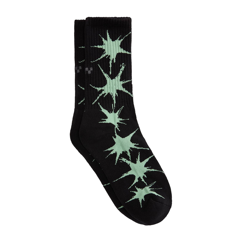 Bold style meets everyday practicality in these crew socks. The ribbed construction delivers consistent support and all-day comfort, while the jacquard splatter print injects personality into your collection. A subtle Checkerboard detail at the ankle nods to skate culture with understated sophistication. Crafted from a balanced blend of cotton, polyester, and elastane fibers, they deliver lasting durability and responsive flexibility. An intelligent choice for those who demand socks that excel in both visual impact and wearability.