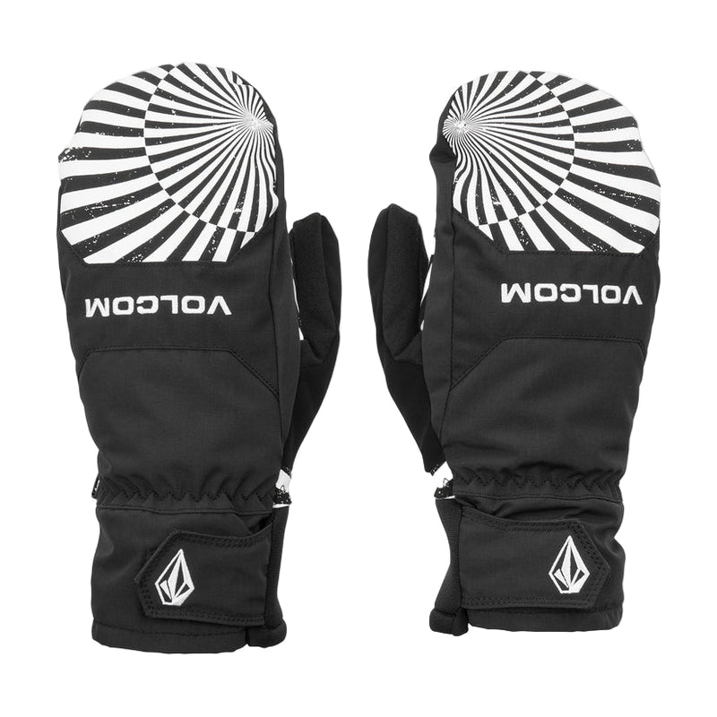 Engineered for serious winter conditions, these men's mittens combine advanced protection with practical functionality. The V-Science waterproof 2-layer construction shields against moisture while 80gm Thinsulate™ insulation maintains warmth in extreme cold. A silicone-printed palm with topographical grip pattern ensures reliable hand control, while the brushed tricot lining provides comfort against skin. Additional features include a suede nose wipe panel for convenience, neoprene undercuff for extended coverage, velcro wrist cinch for secure fit, and an attached glove leash to prevent loss. Volcom and Stone branding complete the design.