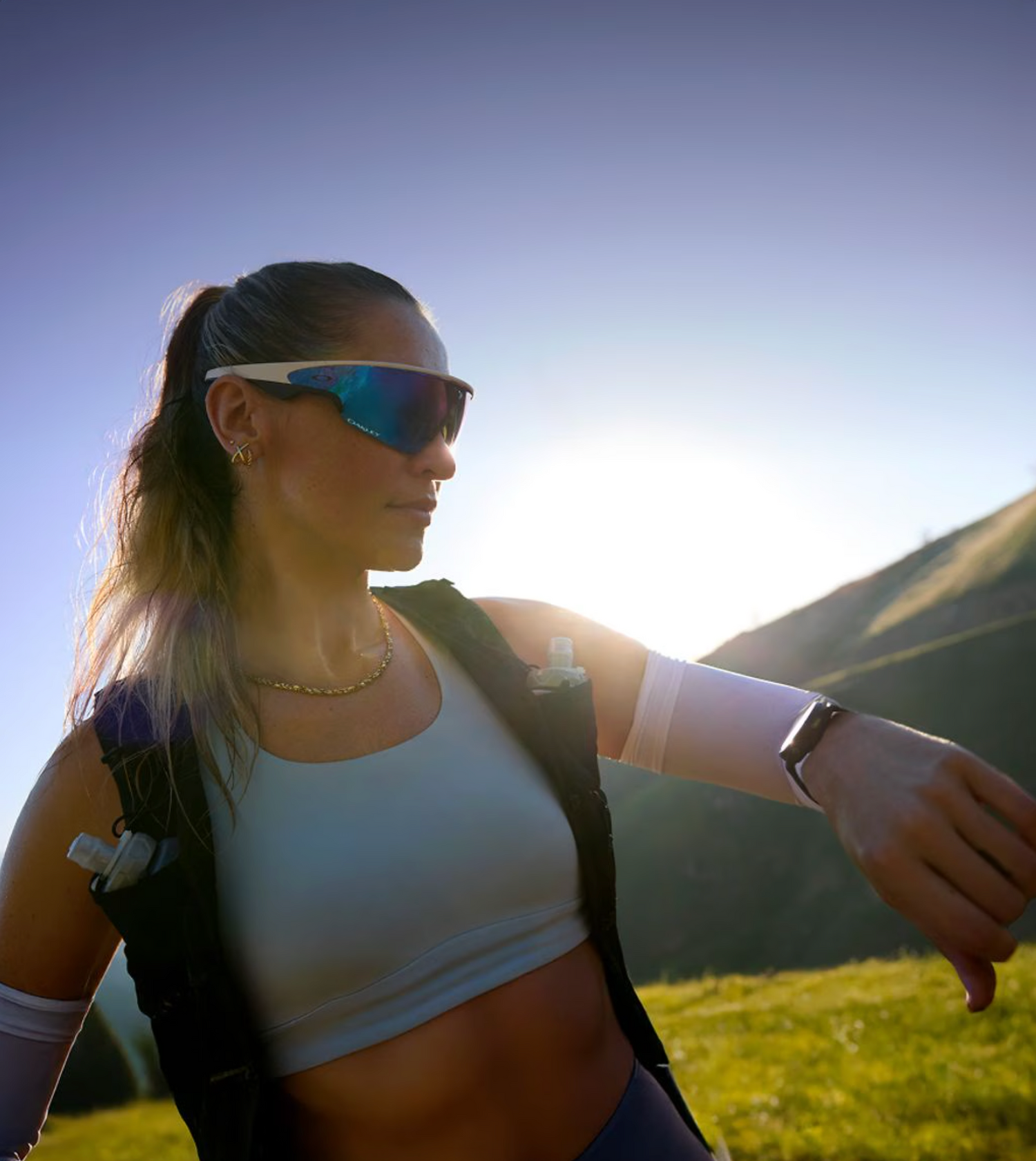 From the first step to the last set, Oakley Meta Vanguard keeps up with you: 6 hours of continuous audio, 9 hours of daily use, and an extra 36 hours with the case. Plus, a full charge takes only 75 minutes. (2)(3)