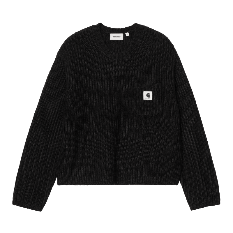 This sweater features fully fashioned knitting at the armholes, a chest pocket, and a square label. Crafted from a refined blend of 75% acrylic, 15% wool, and 10% nylon, it is made with a 3-gauge knit for a polished finish.