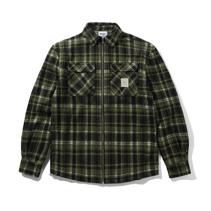 This WOODS SHIRT JACKET ARMY combines durability and refined style with a 10% wool and 90% polyester plaid fabric for lasting comfort and easy maintenance. Designed with dual breast pockets featuring flap and button closures, it offers practical storage while maintaining a sleek look. The front zip-through closure ensures convenience, complemented by a custom satin lining that adds a smooth, premium finish. A woven label on the pocket affirms its quality craftsmanship, making this jacket a versatile and sophisticated choice for contemporary wardrobes.